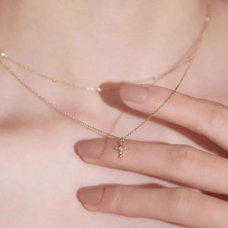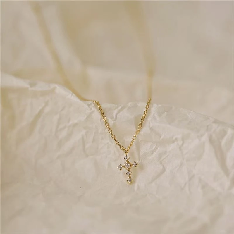 Real 925 Sterling Silver Zircon Cross Pendant Necklaces for Women Minimalist Light Luxury Fine Jewelry Korea Cute Accessor